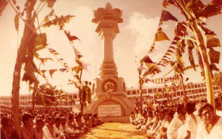 Byłem odpowiedzialny za ukończenie budowy. Po spotkaniu Central Trustu w świątyni, wszyscy jego członkowie przybyli na miejsce razem z Bhagawanem Babą, który polecił mi wymieszać beton i położyć go przed Nim. Następnie podawał pojemnik z betonem każdemu członkowi trustu, który wylewał beton do szalunku kolumny. Ta kolumna widnieje na okładce Sanathana Sarathi, duchowego miesięcznika Bhagawana.