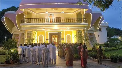 Chciałbym zakończyć ten artykuł wspominając o budowie wspaniałego budynku, w którym Bhagawan Baba przebywa w Brindawanie, nazwanego – Trayee Brindawan. Projekt budynku został wykonany w sierpniu 1983 roku. Miał on zostać wzniesiony w miejscu starej budowli, w której Bhagawan mieszkał przez wiele lat. Cała nowa konstrukcja otoczona jest fosą o głębokości około 1 metra, wypełniona wodą, co sprawia wrażenie majestatycznego budynku unoszącego się na wodzie. Budynek ma okrągły kształt o średnicy 22 metrów. Zbiornik z wodą jest w kształcie kwiatu lotosu z 18 płatkami. W centralnej części budynku znajduje się okrągła sala o średnicy około 13 metrów, zwieńczona segmentową kopułą o wysokości 2,4 metry. Ten wspaniały budynek został ukończony w ciągu zaledwie ośmiu miesięcy. Piękno i dostojność tego budynku są widoczne dla każdego odwiedzającego Brindawan. Jest to jeden z najbardziej niezwykłych cudów architektury na świecie. W tym opowiadaniu nie ma wzmianki o wspaniałych pracach budowlanych wykonanych w szpitalu super-specjalistycznym oraz nowej świątyni w Prasanthi Nilayam. Są one wiecznym przypomnieniem chwały Bhagawana i wielkiego przesłania miłości, służby i poświęcenia, jakie te architektoniczne pomniki przekazują całej ludzkości.źródło: Sanathana Sarathi – numer