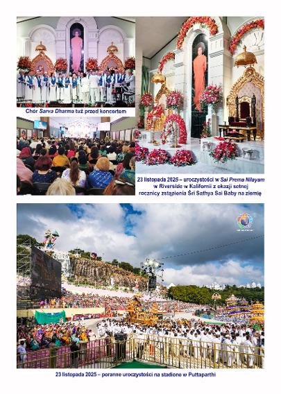 Światowej Konferencji Międzynarodowej Organizacji Śri Sathya Sai w Kalifornii 7. Kalendarium świąt w 2026 8. Przemówienie dr. Narendranatha Reddy’ego w dniu 23.11.2025 9. Służba dla wsi to służba Bogu – A. Kumar 10. Pieniądze z domu 11. Moi studenci są Moim bogactwem – dr Shashank Shah 12. Senior z Rosji – Pan F.N. Siemonowicz 13. Doświadczenie z Boską obecnością – Jagadeesan, Malezja 1995 14. Właściwe decyzje – Diana Baskin 15. Czy Bóg mnie słyszy? – Jack Scher 16. Pobłogosławiony pierścień